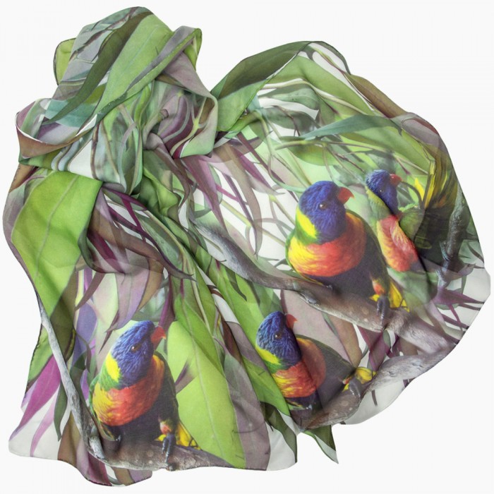 01 Dec Rainbow Lorikeets, one of our signature scarves, now $30 off!